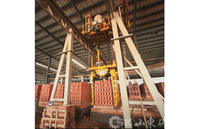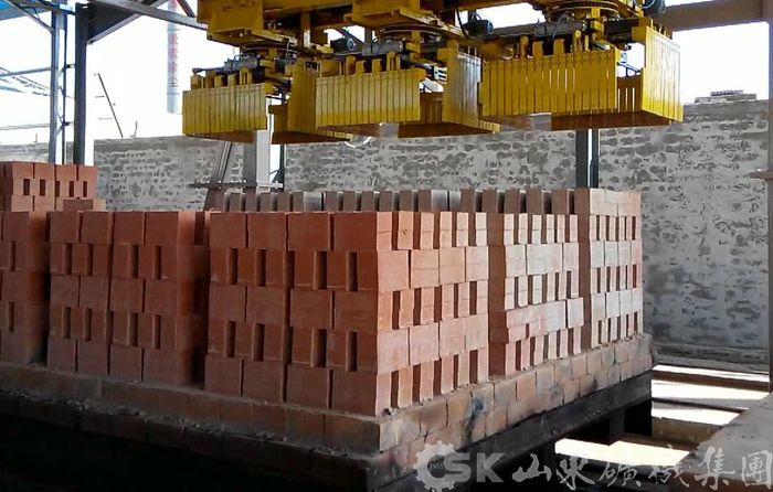 我公司生產(chǎn)的卸垛捆扎系統(tǒng)可以將焙燒好的磚整垛或者分層自窯車上卸下,并實現(xiàn)自動捆扎打包,整個過程由PLC自動控制。本套系統(tǒng)徹底改變了傳統(tǒng)意義上的必須有托盤捆扎打包,可以實現(xiàn)無托盤捆扎打包,既節(jié)省了大量的人力,又大大降低了必須采用托盤而產(chǎn)生的生產(chǎn)成本,這必將是磚瓦行業(yè)自動化領(lǐng)域中的又一次革命。