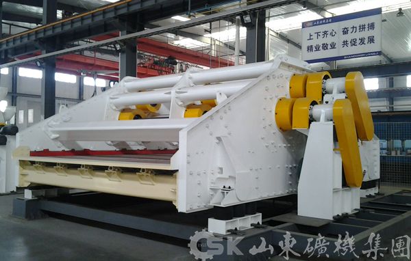4、加強(qiáng)梁采用Y型超靜定組合梁,每組Y型超靜定加強(qiáng)梁通過若干高強(qiáng)度鉸制螺栓與篩箱連接成一體,構(gòu)成一個(gè)封閉的大剛度包容體結(jié)構(gòu)篩體。整個(gè)篩體結(jié)構(gòu)組件的可靠性高,整體剛性大,整機(jī)綜合機(jī)械性強(qiáng)。