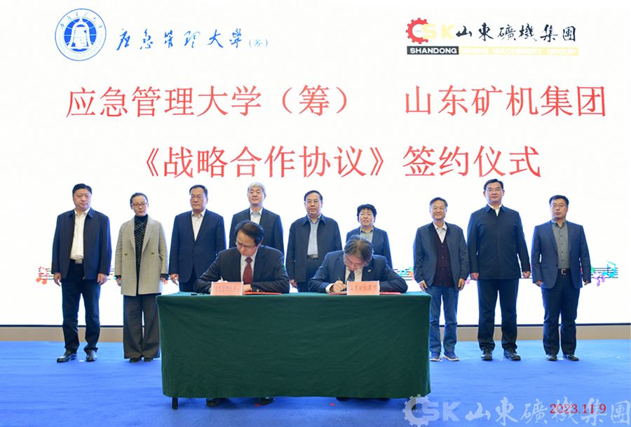 2023年11月9日上午9:00,山東礦機集團(tuán)—應(yīng)急管理大學(xué)(籌)《戰(zhàn)略合作協(xié)議》簽約暨“實踐實訓(xùn)基地”揭牌儀式在桂水逸扉酒店宴會廳隆重舉行。儀式由昌樂縣委副書記、縣長桑海強主持,應(yīng)急管理大學(xué)黨委書記卜昌森,濰坊市政府副市長、市工商聯(lián)主席陳端梅,市應(yīng)急管理局黨委書記、局長王法順,昌樂縣委書記王驍,公司總顧問、原董事長趙篤學(xué),公司黨委書記、董事長趙華濤等領(lǐng)導(dǎo)及公司職工代表共同出席并見證簽約、揭牌儀式。