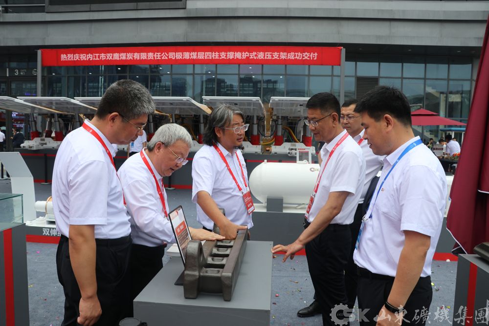 多年來(lái),山東礦機(jī)全力深耕國(guó)內(nèi)外市場(chǎng),為客戶提供專業(yè)化、量身定制化的產(chǎn)品和服務(wù),受到了客戶的信任和支持。本次展會(huì)公司結(jié)合西南地區(qū)特點(diǎn)重點(diǎn)展示了極薄煤層四柱支撐掩護(hù)式液壓支架、薄煤層兩柱掩護(hù)式液壓支架、薄煤層智能型刮板輸送機(jī)等適應(yīng)難采煤層的綜采成套設(shè)備,此外還展示了三伸縮高性能立柱、雙伸縮高性能立柱、多項(xiàng)模鍛閥體、整體精鍛的齒軌輪、JS200輸送機(jī)用減速器、礦用高強(qiáng)度圓環(huán)鏈/緊湊鏈、電液控轉(zhuǎn)向閥等關(guān)鍵精品零部件,尤其在賦能煤礦智能化方面公司展示了中央控制中心、智能集控中心、慣性導(dǎo)航系統(tǒng)、薄及中厚煤層支架電液控制系統(tǒng),智能安全管理終端及后臺(tái)管理系統(tǒng)等關(guān)鍵技術(shù)裝備。展品的亮相得到了觀展人員的濃厚興趣,大家在產(chǎn)品展示區(qū)前紛紛駐足圍觀,不論是產(chǎn)品設(shè)計(jì)、制造能力、外觀處理、智能化方面均受到了行業(yè)專家和客戶的充分認(rèn)可和肯定,展示了公司在綜采成套設(shè)備領(lǐng)域的研發(fā)制造能力和對(duì)未來(lái)智能控制領(lǐng)域的把控能力。展會(huì)首日公司還在現(xiàn)場(chǎng)分別舉行了內(nèi)江市雙鷹煤炭有限責(zé)任公司、貴州元江煤業(yè)有限公司兩套極薄煤層綜采成套裝備的交付儀式。
